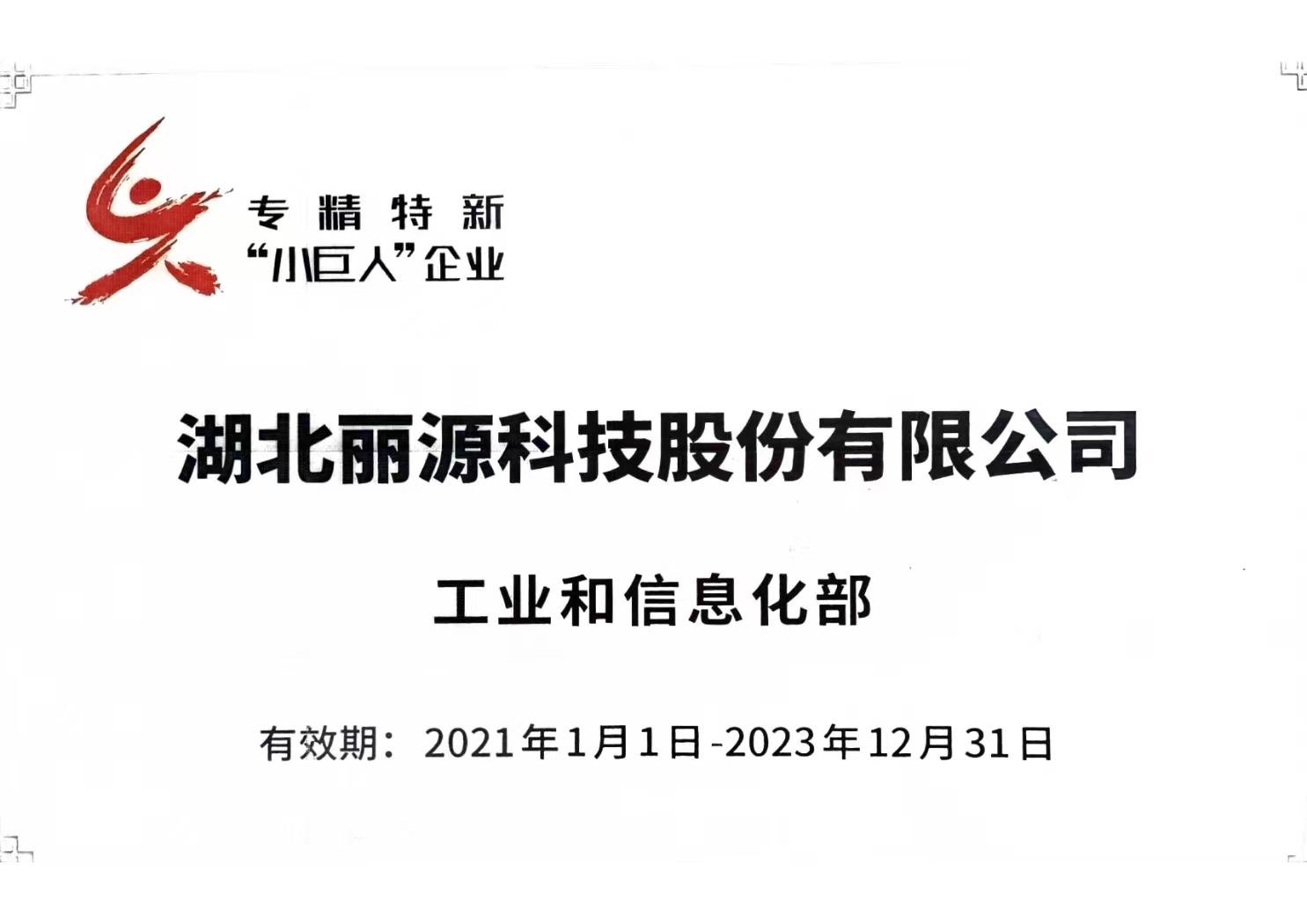 2021年1月,麗源科技被認(rèn)定為「國家級(jí)專精特新重點(diǎn)“小巨人”企業(yè)」